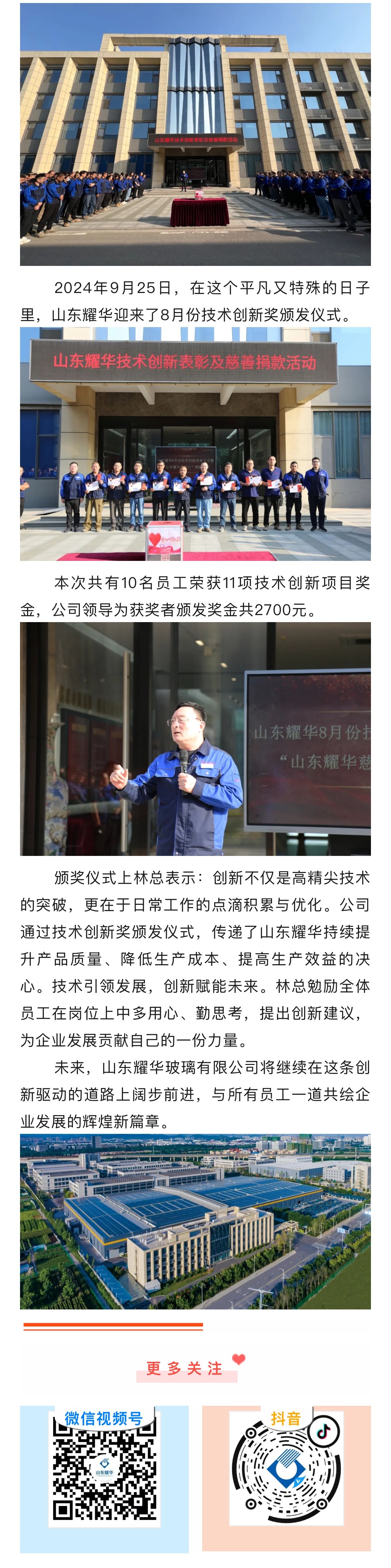 創(chuàng)新驅動發(fā)展 | 山東耀華8月份技術創(chuàng)新表彰儀式圓滿結束!