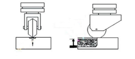 切割刀輪應(yīng)該根據(jù)玻璃所需厚度進(jìn)行調(diào)整,玻璃厚度越厚,使用的刀輪角度及切割壓力越大,玻璃越薄,使用的刀輪角度及切割壓力越小。小角度刀輪壓力不宜過大,否則玻璃切割過程中容易出現(xiàn)破皮的情況;大角度的刀輪壓力也不宜過小,否則會(huì)出現(xiàn)刀印淺或者無刀印的問題。合適的刀輪角度、切割壓力切出來的刀痕應(yīng)該是光滑、均勻、連續(xù),無刨刮、無飛屑。