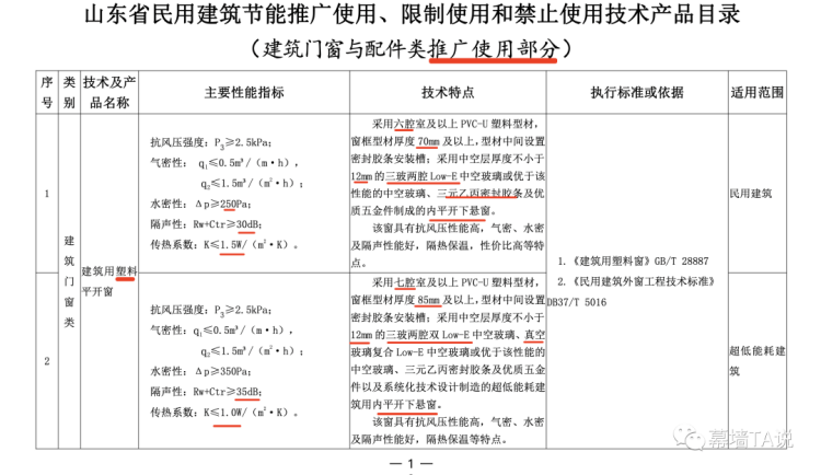 【規(guī)范條文】山東省民用建筑節(jié)能推廣使用、限制使用和禁止使用技術(shù)產(chǎn)品目錄(建筑門窗與配件類)