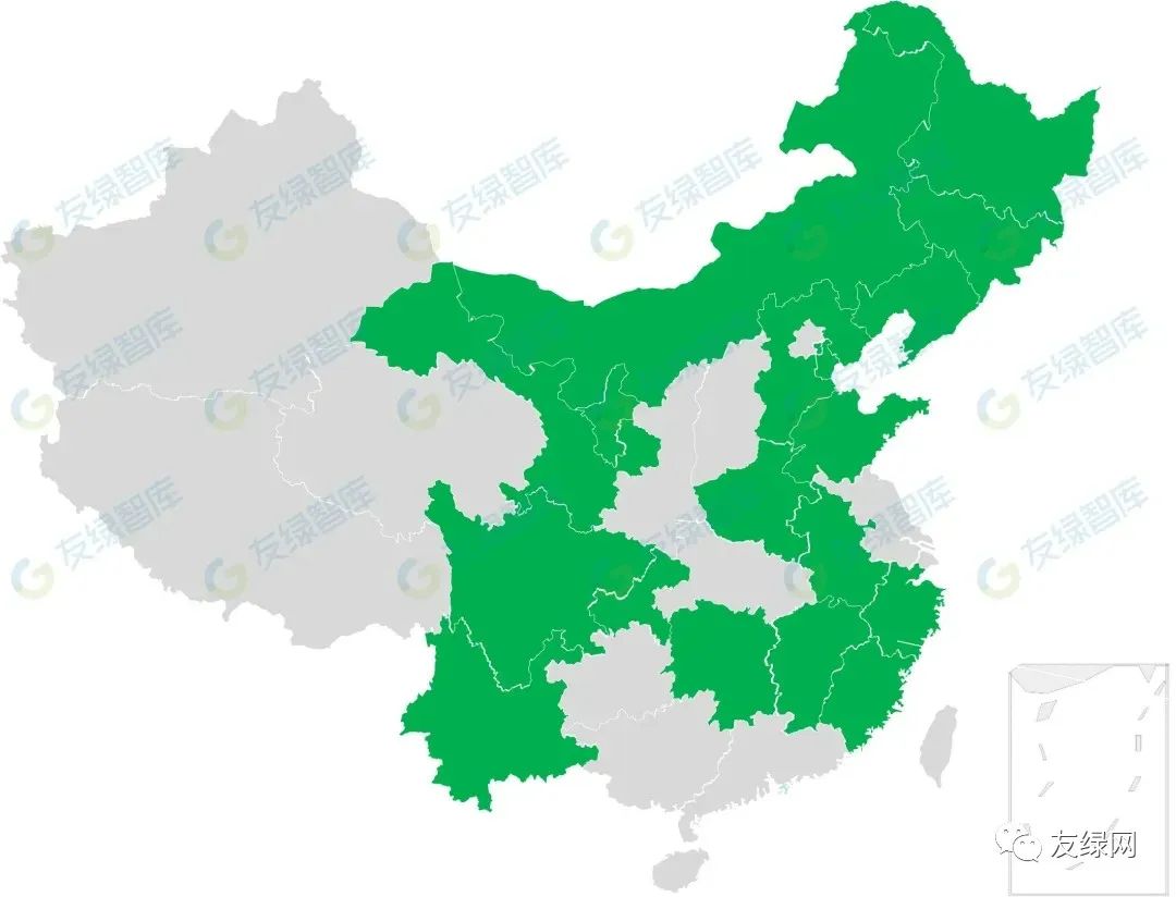 綠色為已發(fā)布《“十四五”節(jié)能減排綜合工作方案》的地區(qū)