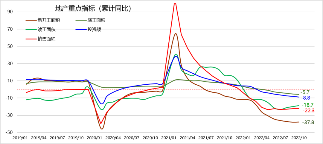 房屋新開工面積10.37億平方米,同比-37.8%;比1-9月提高0.2百分點