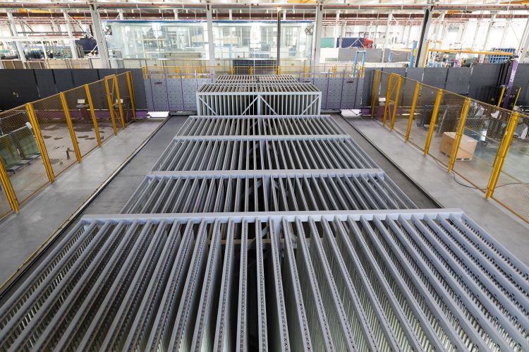 主要包含智能穿梭式玻璃輸送機(jī)與分隔貯存架。